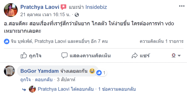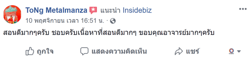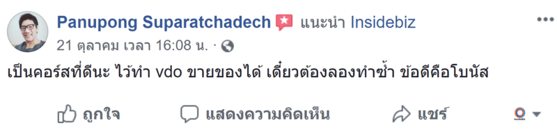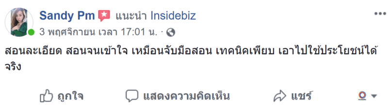 หมายเหตุ - ทั้งหมดนี้เป็นรีวิวจากผู้เรียนจริง มีผลลัพธ์จริง ท่านสามารถตรวจสอบได้ในหน้ารีวิวบนหน้าเพจ Insidebiz